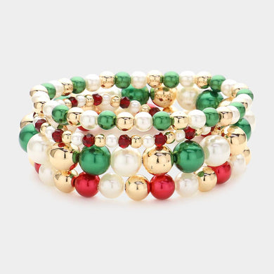 Holiday Snowflake Bow Santa Reindeer Christmas Beaded Stretch - Multi Layered Bracelets