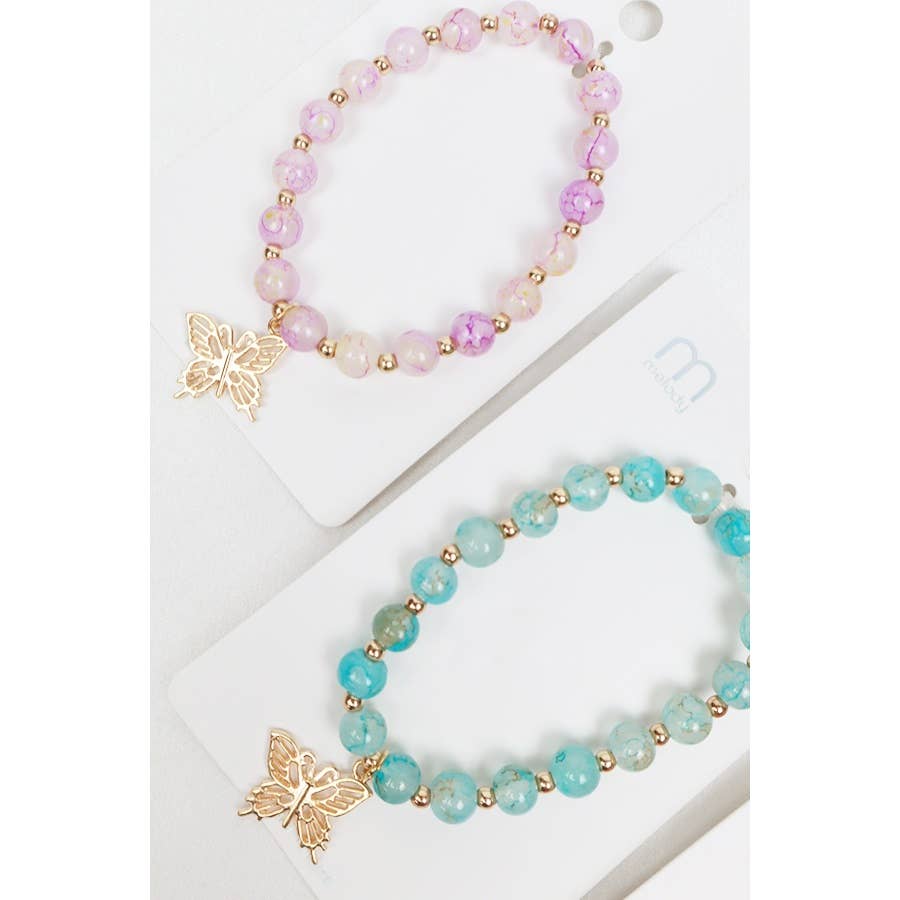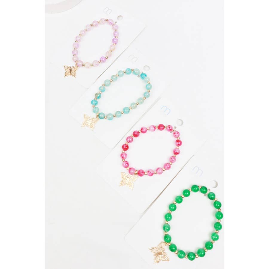 This stunning Butterfly Charm Glass Bead Bracelet is a must-have for anyone who appreciates elegance and femininity in their accessories. The intricate marbled design adds a touch of whimsy and charm, making it a perfect addition to any outfit. Don't miss out on this exquisite piece!