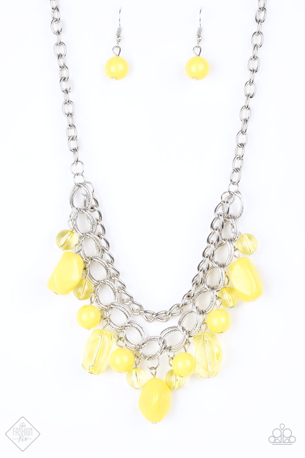 Featuring glassy and polished finishes, round and asymmetrical Meadowlark beads trickle from the bottom of a double-linked silver chain. An additional silver chain is layered above the summery beading for a seasonal finish. Features an adjustable clasp closure.