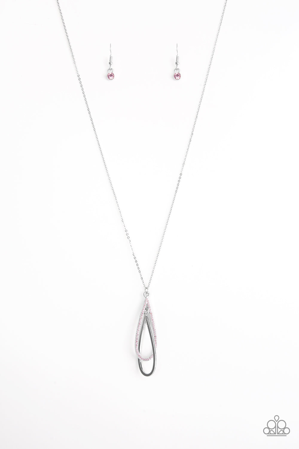 Paparazzi Step Into the Spotlight - Pink - Rhinestones Teardrop - Necklace and matching Earrings - $5 Jewelry With Ashley Swint