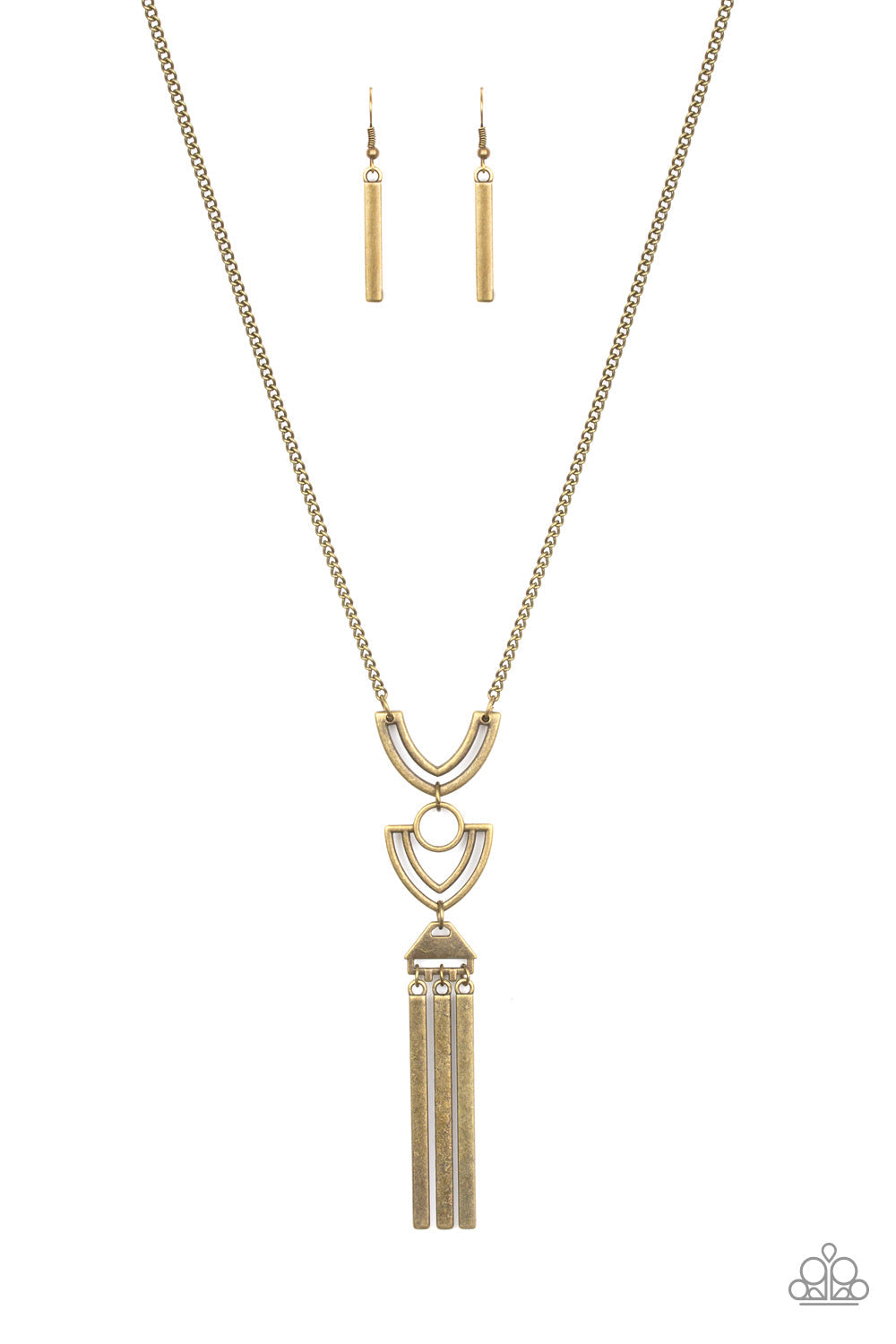 Paparazzi Confidently Cleopatra - Brass - Stacked Pendant - Necklace & Earrings - $5 Jewelry With Ashley Swint